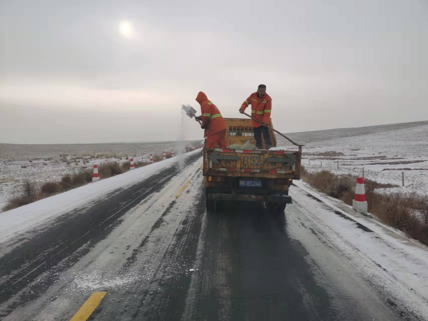 截至目前,累计出动除雪车、平地机、农用车、雪铲等共计44台班,出动养护工人76人次,撒布融雪剂55吨,目前,除雪工作仍在进行中。