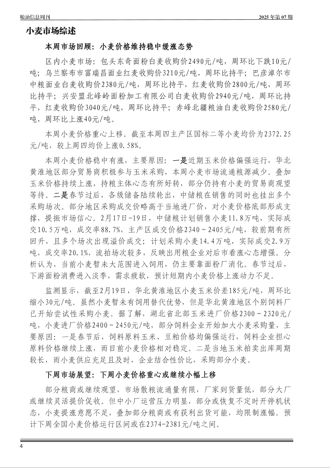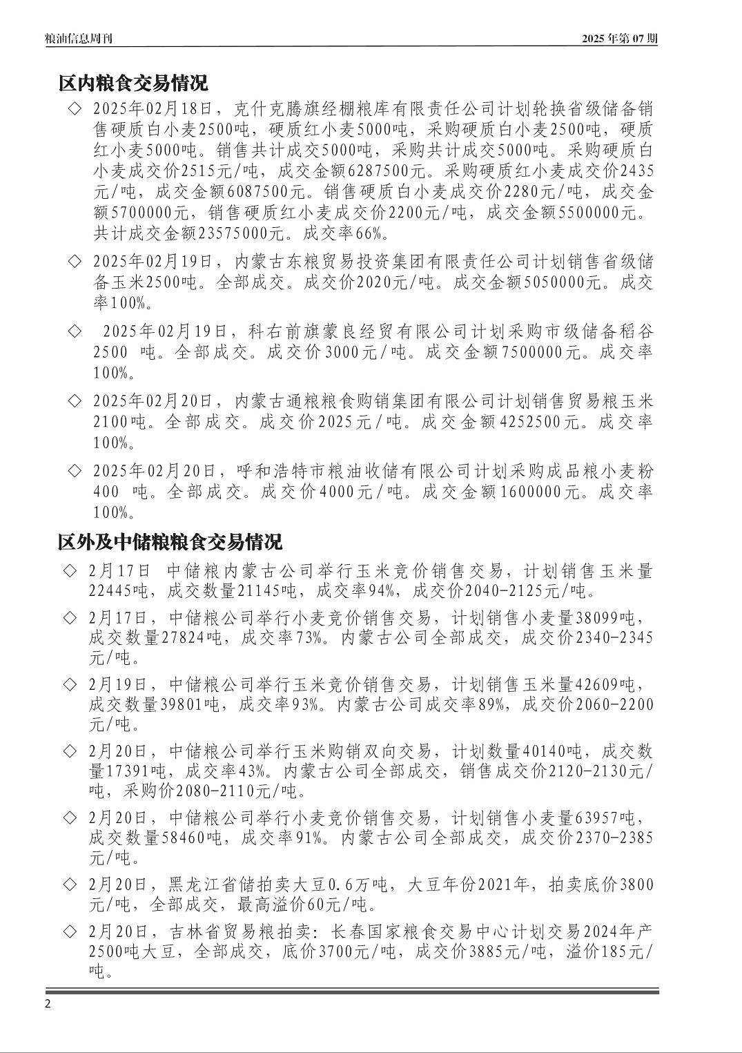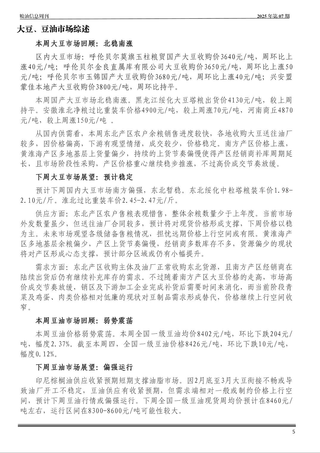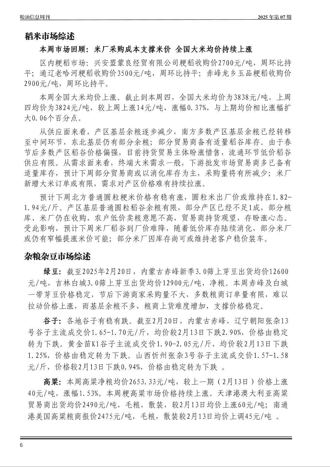 粮油信息周刊2025年第07期(总第551期)