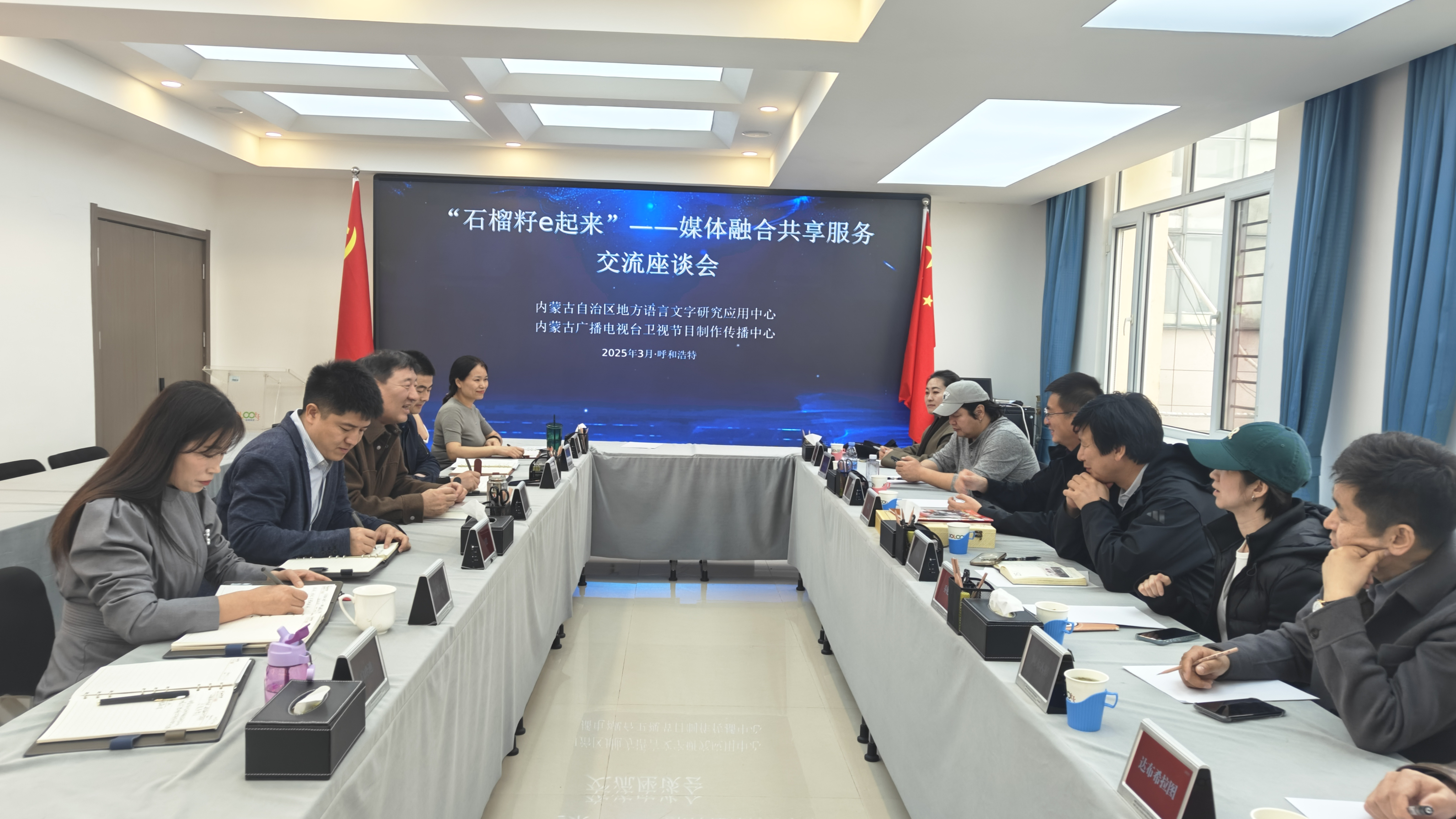 “石榴籽e起来”——释放融媒新质生产力——地方语言文字研究应用中心举办媒体融合共享服务交流座谈会 , 3月14日,自治区民委地方语言文字研究应用中心与内蒙古广播电视台卫视节目制作传播中心联合举办“石榴籽e起来”媒体融合共享服务交流座谈会。此次座谈会以“释放融媒新质生产力”为主题,聚焦媒体融合与资源共享,旨在通过跨域联动与合作,深入推进铸牢中华民族共同体意识宣传教育全覆盖行动,全面推动中华民族共同体建设。 座谈会现场 会上,双方围绕媒体融合共享服务,创新合作展开了深入交流,并达成重要共识。未来,双方将以融媒新质生产力为驱动,创新传播载体、丰富宣传内容,融合多媒体技术与文化传播,讲好中华民族共同体故事,进一步提升铸牢中华民族共同体意识宣传的感染力与影响力。同时,双方将共建共享服务平台,通过“品牌节目+品牌活动”等创新形式,打造有形、有感、有效的宣传教育模式,并依托数字化共享平台,整合优质资源,为各族群众提供多元化、高质量的精神文化内容。此外,双方还将充分利用大数据、人工智能等新技术,开创沉浸式、交互式宣传新模式,让党的创新理论在互动中可观、可感、可共鸣,真正深入人心。 下一步,双方将以此次座谈会为契机,持续深化合作,充分释放融媒新质生产力,为铸牢中华民族共同体意识、促进民族团结进步注入新动能,助力民族工作高质量发展。 参观“石榴籽e起来”民族工作数字化展厅活动期间,与会人员参观了“石榴籽e起来”民族工作数字化展厅,深入了解了数智技术在民族工作领域的创新应用,见证了融媒新质生产力在民族工作中的实际成效。 初审:白玲迪 复审:阿拉坦巴根那 终审:康宇凤编辑制作:内蒙古民族团结杂志社