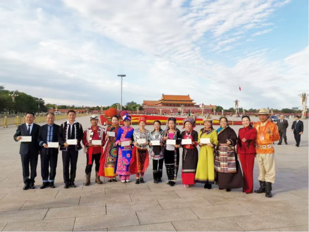 ▲2024年全国少数民族参观团部分成员在天安门广场前合影留念。(图片来源:中国民族报)
