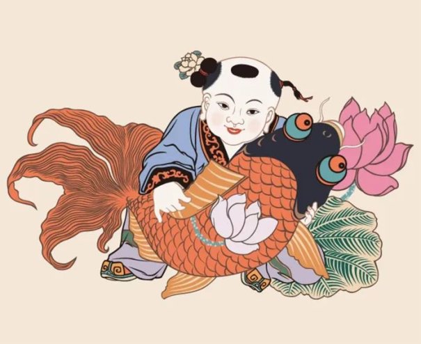 ▲年画:胖娃娃抱鲤鱼。(图片来源:艺术中国)