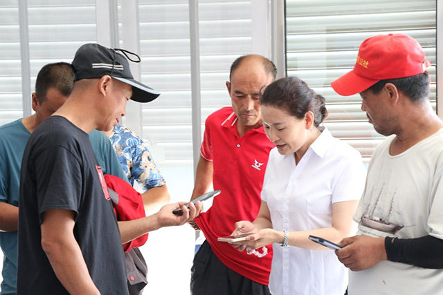 工作人员帮助求职者下载“通辽零工”线上服务平台