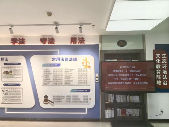 全体党员干部集体收看了《宪法的精神 法治的力量——2024年度法治人物》专题节目,聆听10位“2024年度法治人物”和6位“致敬英雄”人物讲好“以人民为中心”的中国法治故事,他们忠诚履行党和人民赋予的神圣职责,立足本职、默默奉献,为我国法治建设作出了突出贡献。观看结束后,大家共同参与了司法部、全国普法办组织开展的宪法知识网上竞答活动。同时充分发挥法治文化阵地作用,播发宪法相关图文资料,扎实做好宪法宣传教育。