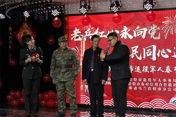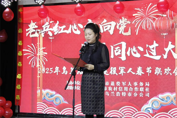 1月8日,乌兰浩特市举办“老兵红心永向党 军民同心过大年”2025年退役军人春节联欢会,全市退役军人和其他优抚对象代表、现役军人代表、消防指战员代表、民兵代表欢聚一堂,喜迎新春佳节的到来。盟市相关单位负责人及乌兰浩特市拥军企业相关负责人参加活动。