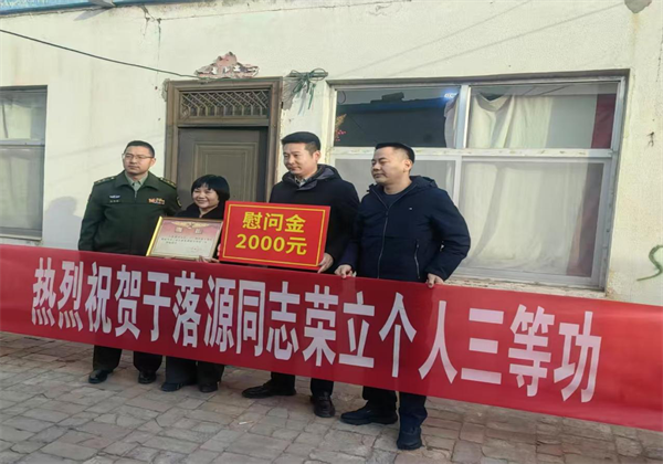 为进一步弘扬新时代爱国拥军光荣传统,切实提高军人荣誉感,激发建功军营的政治热情,增强家属的自豪感,1月21日上午,伊金霍洛旗人民武装部、伊金霍洛旗退役军人事务局为荣立三等功的赵健、于落源同志的家庭送上立功喜报、新春贺礼并赠送了慰问金,让军人军属共享尊崇荣光。