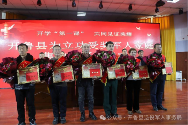 随后,开鲁县退役军人事务局局长辛贵义宣读此次荣获三等功人员名单,与会领导庄重地为受奖军人家庭颁发三等功喜报以及慰问金,向他们致以热烈祝贺,也对军属们为国家和军队培养优秀人才表达了诚挚感谢。