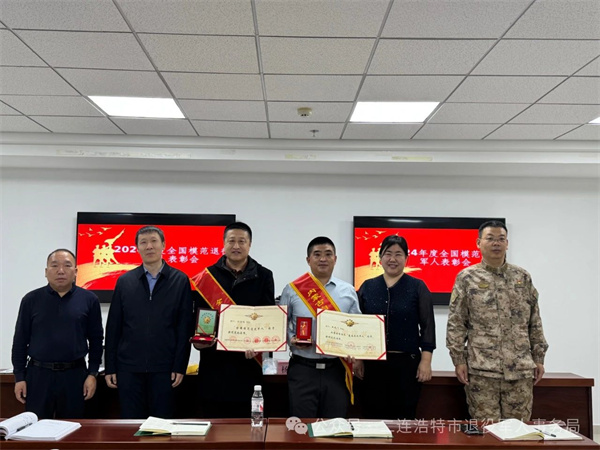 市退役军人事务局领导班子、市纪委监委派驻组同志出席会议,2024年度二连浩特市荣获全国“模范退役军人”、自治区“最美退役军人”称号的退役军人,市退役军人事务局全体干部职工参加会议。