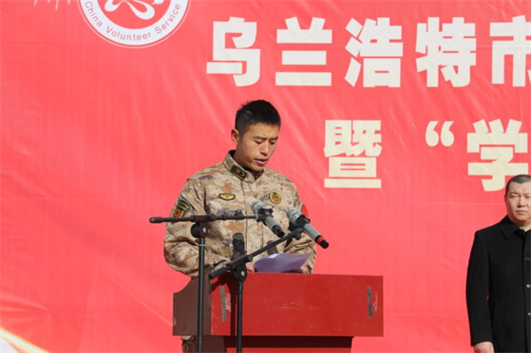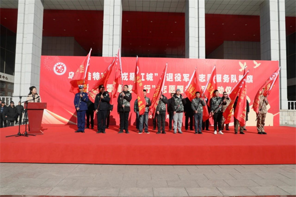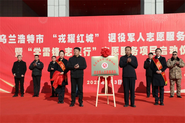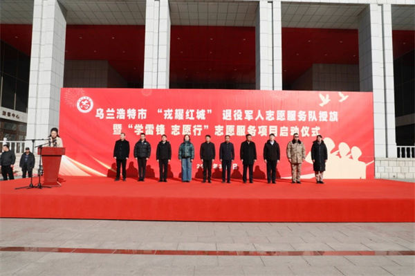 兴安盟退役军人事务局局长吕志鹏、乌兰浩特市政协主席耿成为乌兰浩特市“戎耀红城”退役军人志愿服务队冠名揭牌。市政府副市长王国安在致辞中指出,举办此次活动,旨在进一步夯实退役军人志愿服务组织建设,激励广大退役军人踊跃投身学雷锋志愿服务。希望广大退役军人能够继续保持军人的优良作风,争做新时代正能量的传播者,做好身边事、服务身边人,以实际行动弘扬和践行新时代雷锋精神,为全市社会事业高质量发展作出积极贡献!