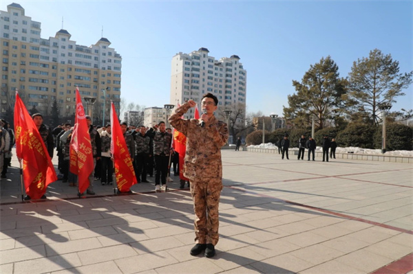 为深入学习贯彻习近平总书记关于退役军人工作重要论述和志愿服务的重要指示精神,铸牢中华民族共同体意识,充分发挥退役军人的优势和作用,弘扬雷锋精神,深入开展退役军人志愿服务活动,3月3日,乌兰浩特市“戎耀红城”退役军人志愿服务队授旗暨“学雷锋 志愿行”志愿服务项目启动仪式在内蒙古民族解放纪念馆广场举行。盟市相关领导及相关单位负责人,全市各镇街退役军人服务站负责人、各支“戎耀红城”退役军人志愿服务队队长及志愿者代表参加了启动仪式。