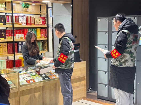 胜利街“戎耀红城”退役军人志愿服务队联合新桥社区社区工作者,在辖区重点路段及商业街区开展 “平安护航・共建共治”主题巡逻宣传活动,采取“步巡”方式,对商超市场等重点区域进行全方位巡查,同步向居民普及防盗反诈、应急逃生等知识。