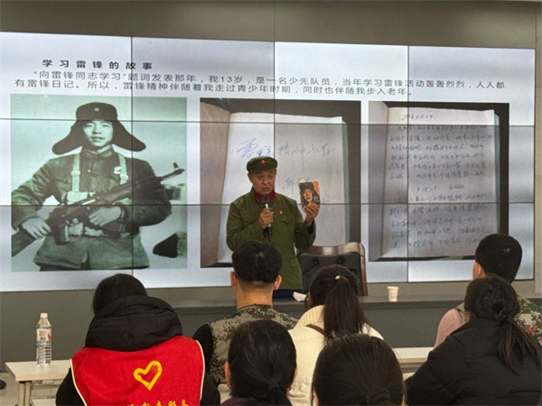 五一街“戎耀红城”退役军人志愿服务队联合街道,邀请老兵宣讲团成员韩宝贵老师、退役军人志愿服务队丛志明老师在代钦社区党群服务中心开展“‘橄榄绿’续写雷锋红——退役军人志愿服务队服务于基层一线”主题活动。