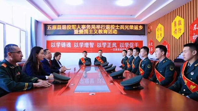 五原县退役军人事务局举行了退役士兵光荣返乡仪式暨爱国主义教育活动,宣讲各类政策并组织退役士兵前往烈士陵园烈士墓地献花。退役士兵表示,今后一定会继续保持和发扬部队的好思想、好传统、好作风,刻苦学习,踏实工作,用部队的标准和军人的作风开创一片新的天地,为退役军人争光,为人生添彩。