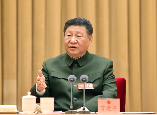 3月7日下午,中共中央总书记、国家主席、中央军委主席习近平出席十四届全国人大三次会议解放军和武警部队代表团全体会议并发表重要讲话。