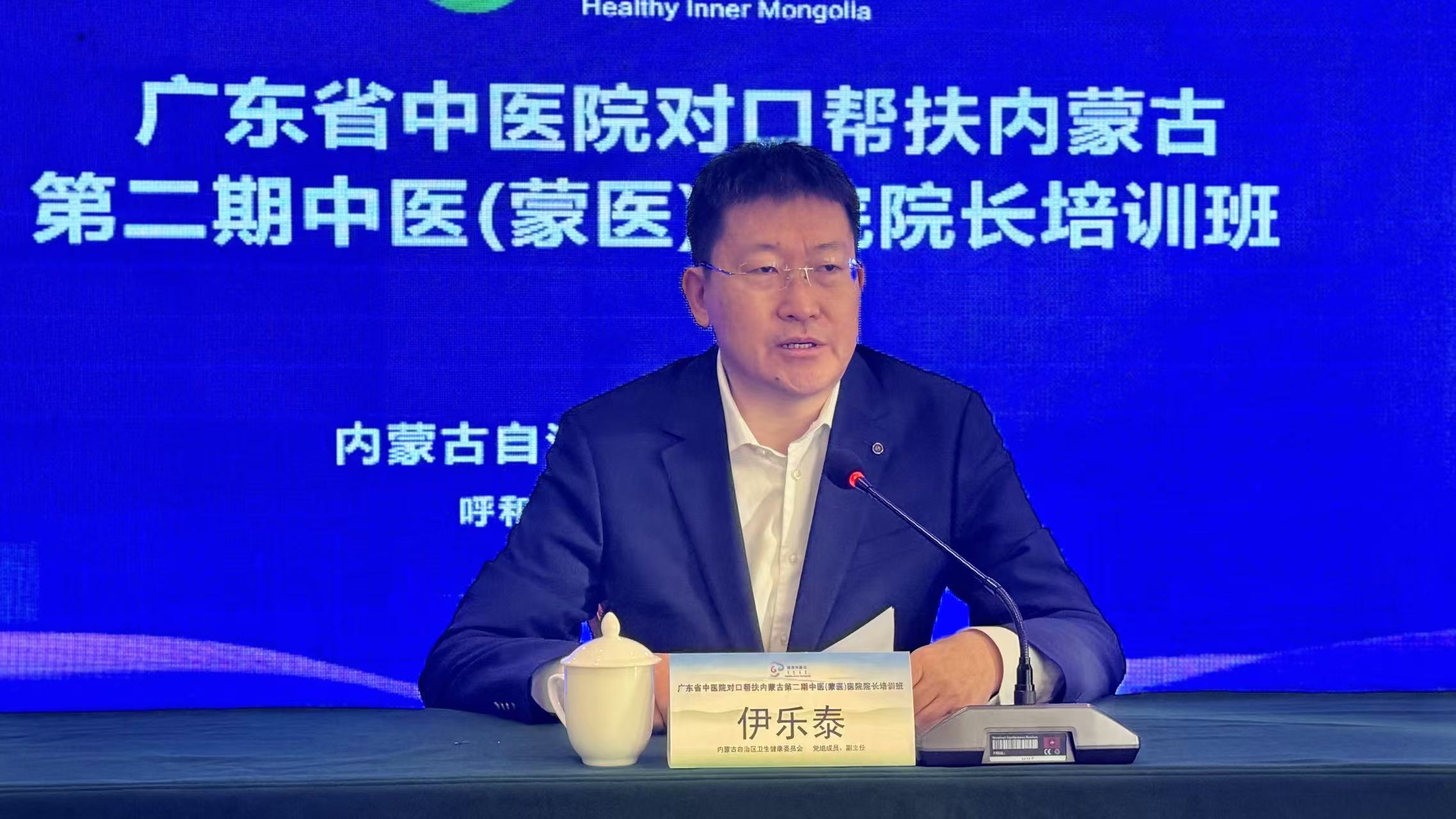 2024年12月4—8日,广东省中医院对口帮扶内蒙古第二期中医(蒙医)医院院长培训班在呼和浩特市举办。内蒙古自治区卫生健康委员会党组成员、副主任伊乐泰出席开班仪式并致辞。全区各盟市卫生健康委中医(蒙医)科科长,二级甲等以上中医(蒙医)医院主要负责人共120余人参加培训。