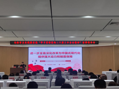 宣讲报告会要求,要在持续深化理论学习上下功夫。各级党组织要充分发挥管思想抓教育的引领示范作用,采取多种形式组织党员干部全方位、多角度、深层次理解党的二十届三中全会精神。全体党员干部要切实发挥主观能动性,通过自学、集中学习相结合的方式深入学习全会精神,深刻领悟核心要义、精神实质、丰富内涵和实践要求,努力做到学深悟透、融会贯通。要在持续深化理论宣讲上下功夫。各单位要灵活运用官方网站、微信公众号等新媒体平台,以及线下集中宣讲等多种途径开展宣传、宣讲工作,推动全会精神进医院、进机关、进社区、进网络,真正让全会精神“飞入寻常百姓家”,实现群众愿意听、听得进、有感触的良好效果。要在持续深化理论转化上下功夫。将贯彻落实党的二十届三中全会精神与当前重点工作结合起来,用全会精神指导实践、推动工作,聚焦“看好病、好看病”,持续推进深化医药卫生体制改革,抓紧抓实国家紧密型城市医疗集团建设,加快建设分级诊疗体系,深入实施健康乌海行动和爱国卫生运动,以系统观念推进和谋划全面深化改革,切实把学习成果转化为推动卫生健康事业高质量发展的强大动力。(赵成昊 供稿)