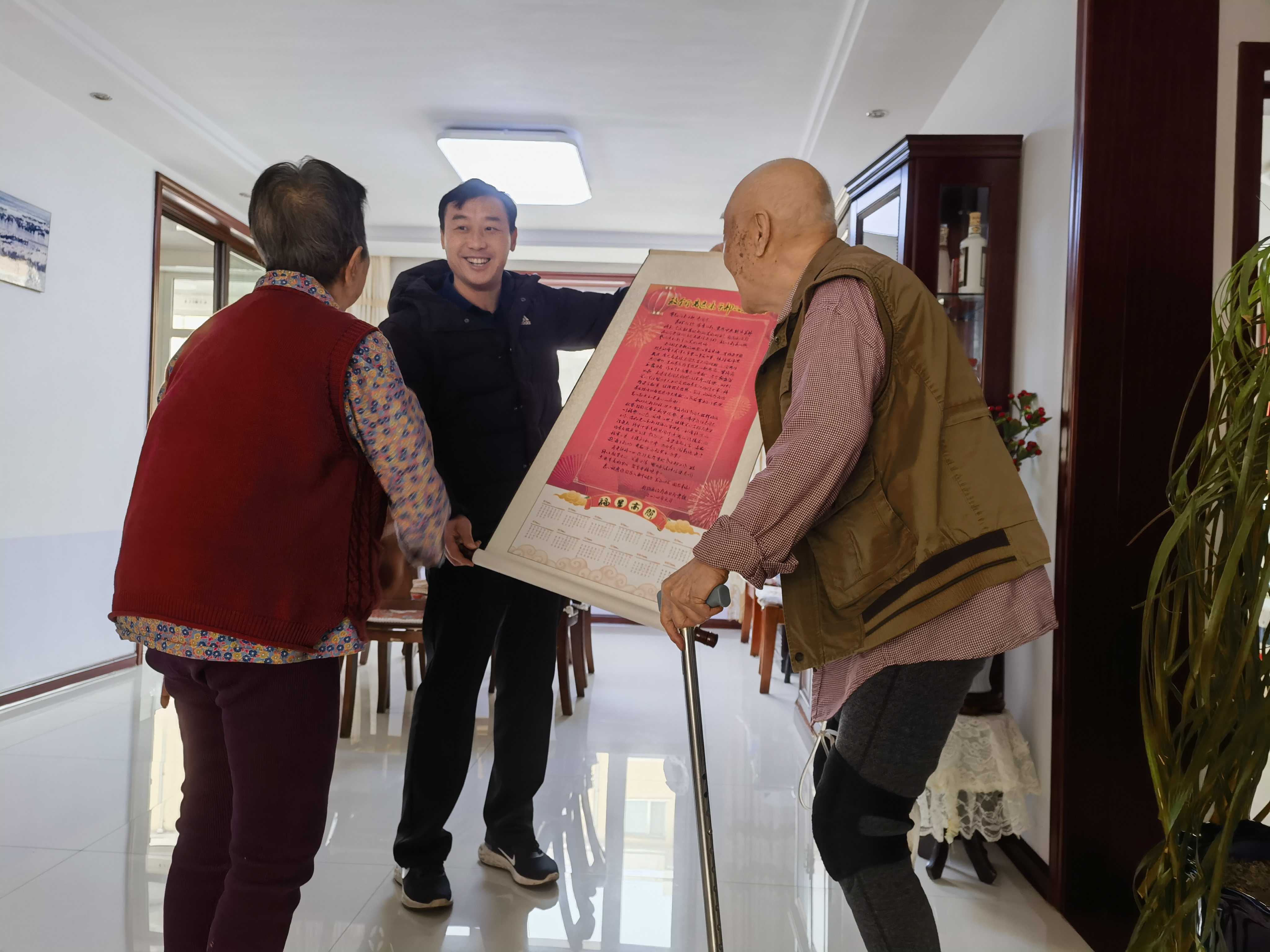 每到一家,离退休人员工作处工作人员都亲切询问老干部的身体健康状况、家庭生活情况和存在的困难,倾听他们的心声,送上厅党组为老干部准备的慰问信和慰问金,感谢他们为政府办公厅发展作出的贡献,鼓励他们在安享晚年的同时,继续发挥余热,为自治区经济社会发展建言献策,并祝愿他们度过一个欢乐祥和的新春佳节。