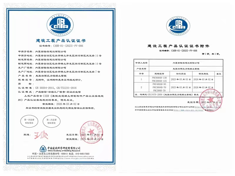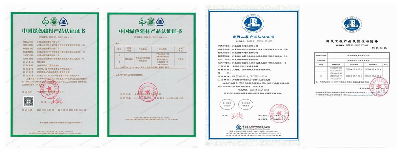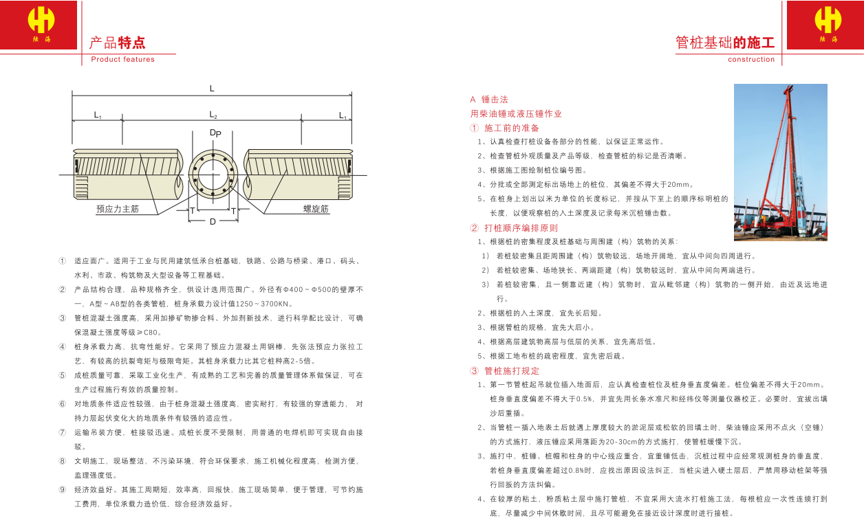 预应力混凝土管桩:PHC管桩直接作为工程基础,其强度等级NC80,桩身承载力比其他桩种高3~5倍。 成桩质量可靠,PHC管桩对地质条件适应性强,有较强的穿透能力,对持力层起伏变化的地质条件有较强的机动性,运输吊装方便,采用静压、锤击方式施工,桩接驳迅速,成桩长度不受限制。