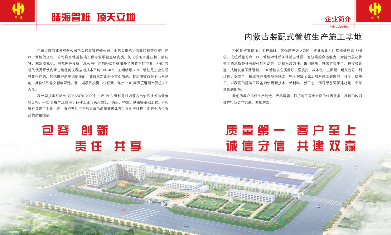 PHC管桩直接作为工程基础,其强度等级NC80,桩身承载力比其他桩种高3~5倍。 成桩质量可靠,PHC管桩对地质条件适应性强,有较强的穿透能力,对持力层起伏变化的地质条件有较强的机动性,运输吊装方便,采用静压、锤击方式施工,桩接驳迅速,成桩长度不受限制。PHC管桩以它质量好、强度高、成本低、工期短、耐久性好、利环保、保安全、抗腐蚀性等优点,并且能在冬季施工,完全解决了冻土层对施工的影响,可全天侯施工,对我区的建筑工程基础使用新技术、新材料、新工艺,倡导绿色环保建材是一个革命性的创举。