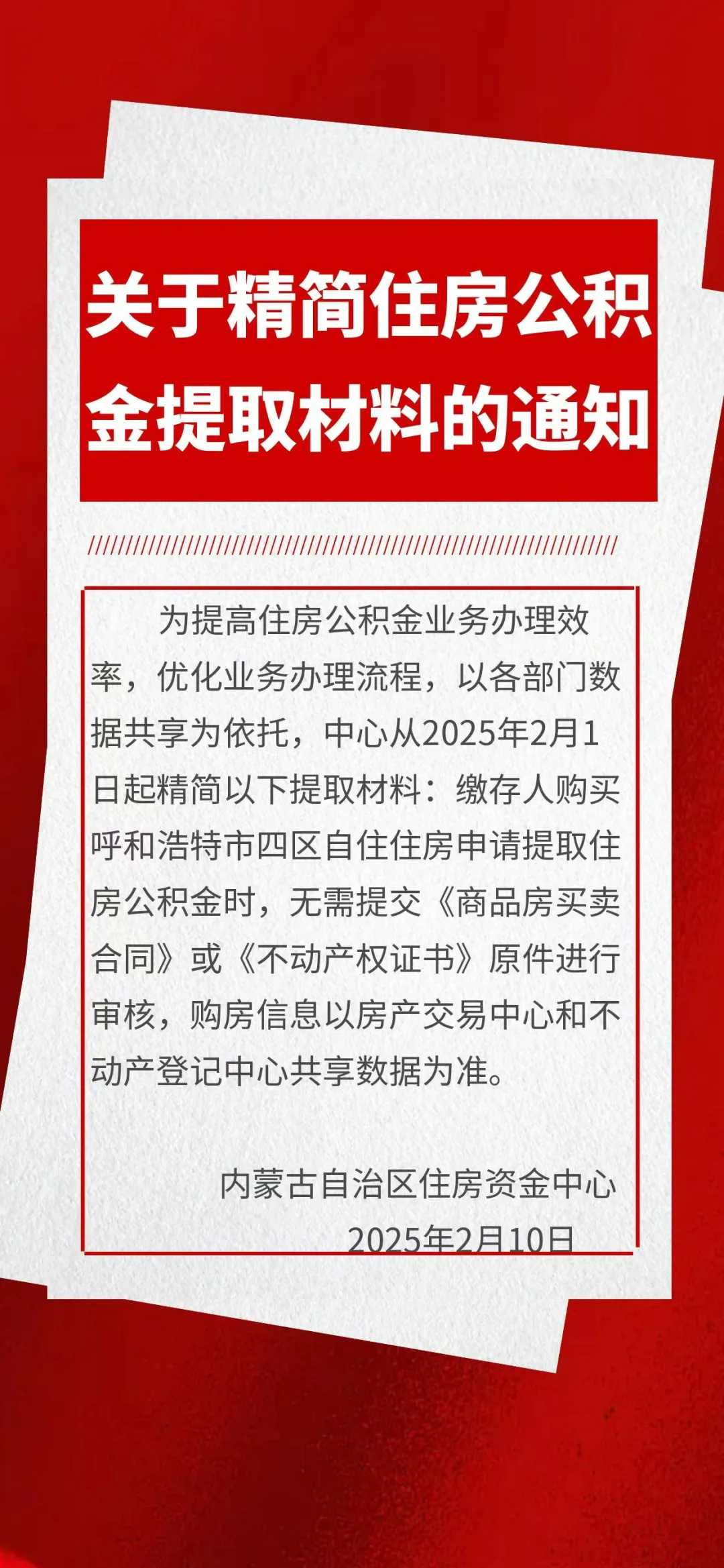 自治区住房资金中心关于精简住房公积金提取材料的通知