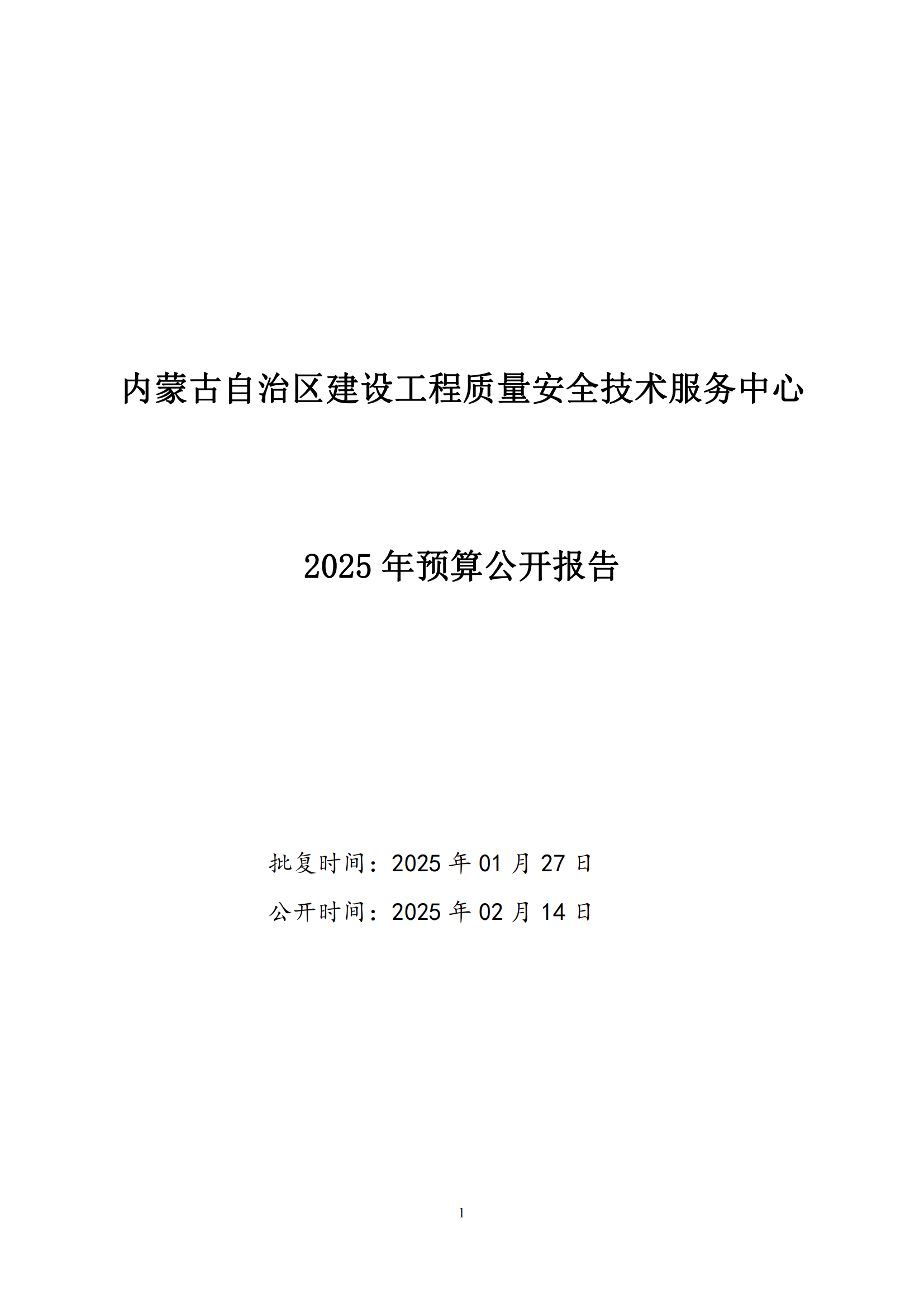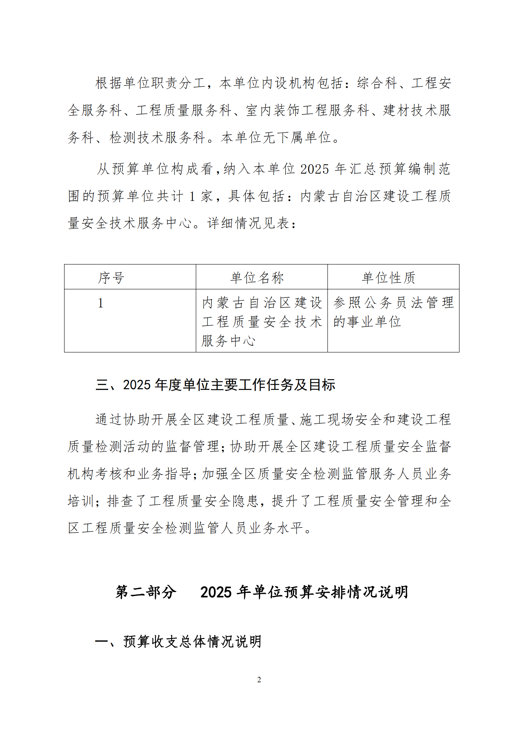 内蒙古自治区建设工程质量安全技术服务中心2025年预算公开报告