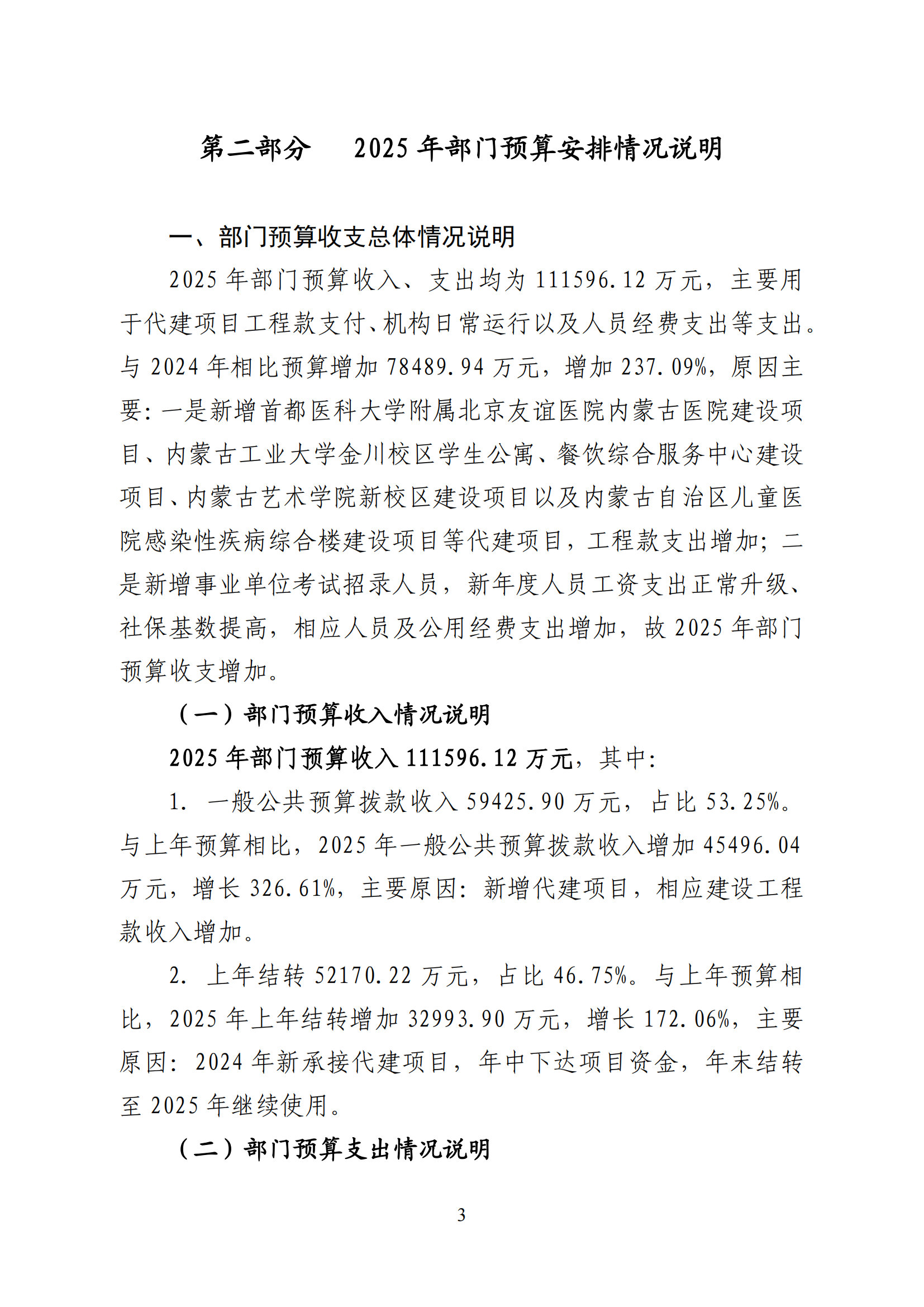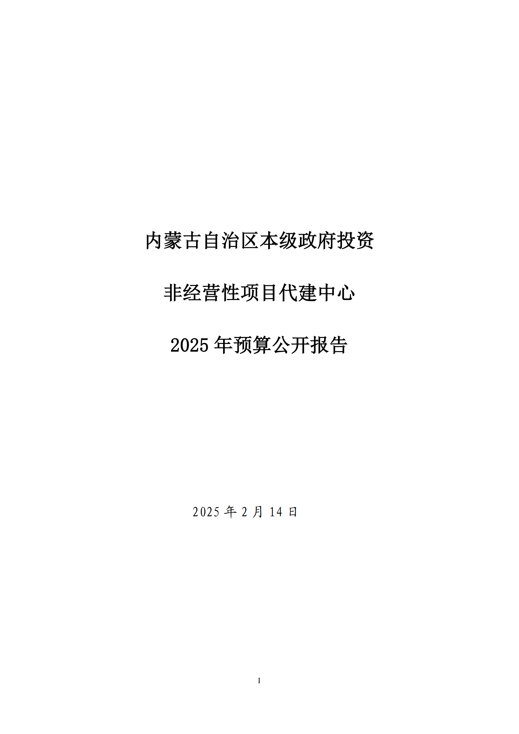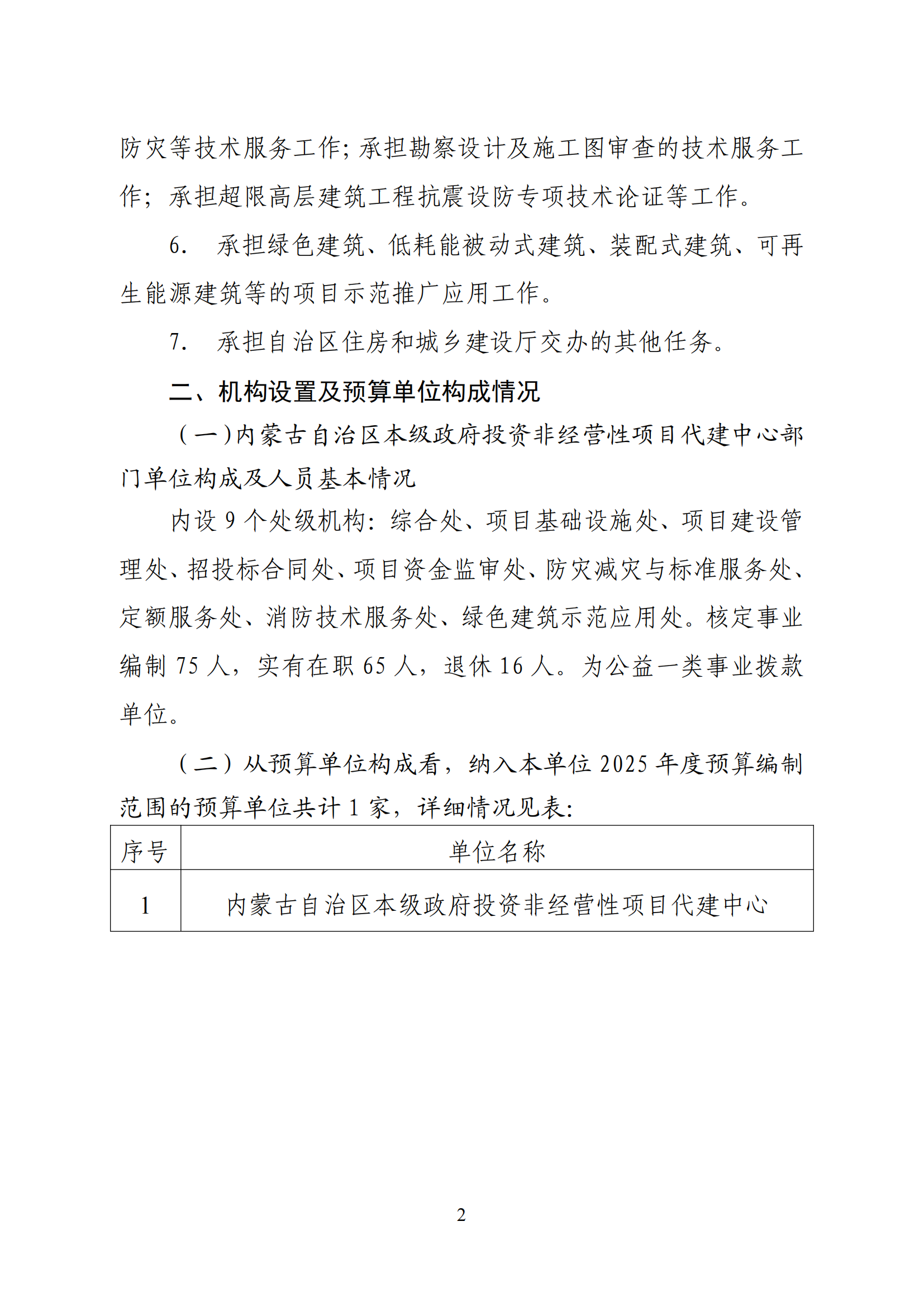 内蒙古自治区本级政府投资非经营性项目代建中心2025年预算公开报告