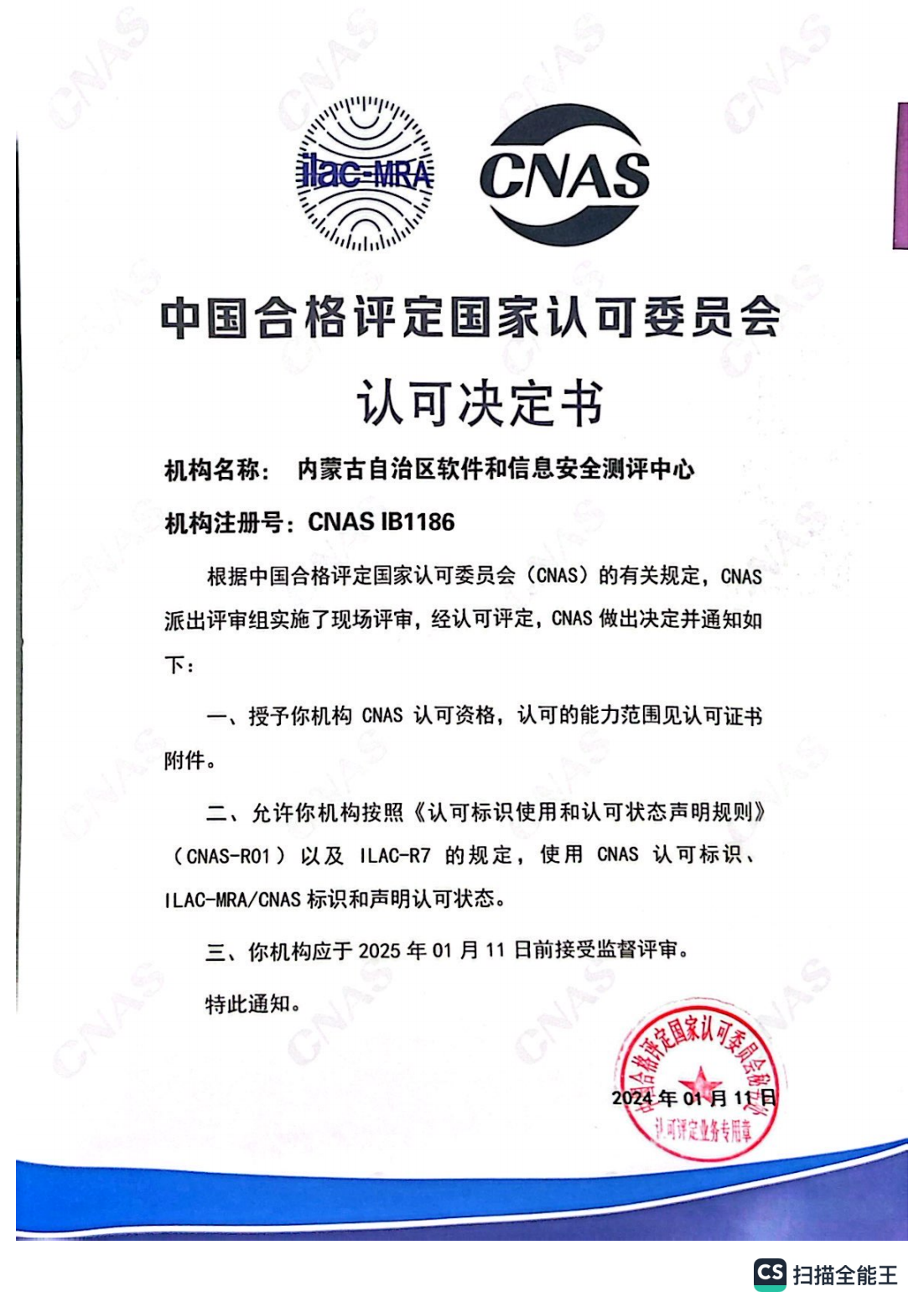 国家级认证!内蒙古自治区软件和信息安全测评中心取得CNAS实验室和检验机构认证
