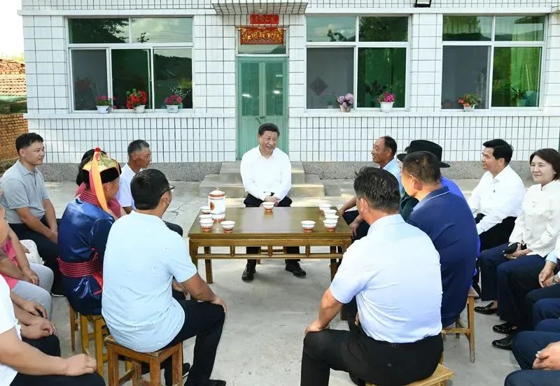 2019年7月15日至16日,习近平在内蒙古考察并指导开展“不忘初心、牢记使命”主题教育。这是15日下午,习近平在赤峰市喀喇沁旗河南街道马鞍山村村民张国利家,同基层干部群众代表座谈交流。 新华社记者 谢环驰 摄