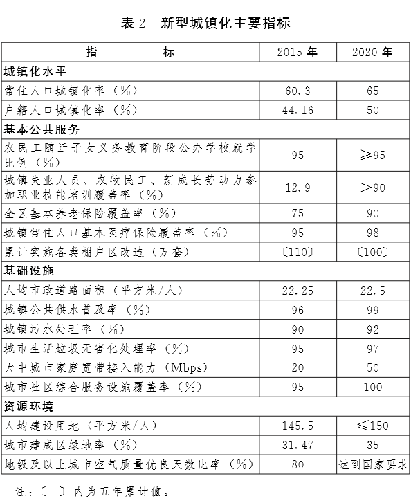 ——城镇化程度进一步提高。户籍人口城镇化率提高到50%左右,常住人口城镇化率提高到65%左右,两个城镇化率高于全国平均水平5个百分点左右。