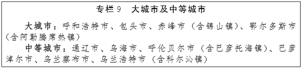 增强大中城市辐射带动功能。发挥区域中心城市支撑城镇化格局的重要支点作用,做大做强盟市府驻地城市、重要节点城市,优化产业结构和城市空间布局结构,提升城市品位,强化综合承载能力,推动中心城区与周边区域的交通、信息网络等连接和产业分工协作,增强辐射带动和综合服务能力。推进包头市东河区和乌海市海勃湾区国家中小城市综合改革试点。到2020年,全区形成4个大城市和6个中等城市。(住建厅、经信委、交通厅)