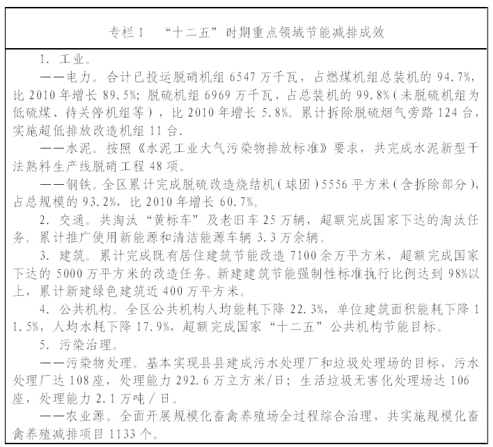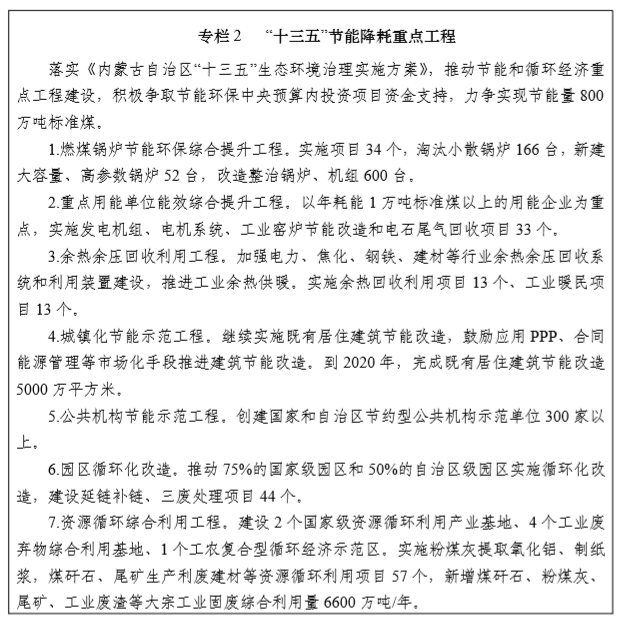 内蒙古自治区节能减排“十三五”规划