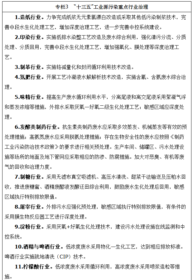 强化工业集聚区污染治理。2017年底前,工业集中区要按规定建成污水集中处理设施,并安装自动在线监控装置,逾期未完成的,一律暂停审批和核准增加水污染物排放的建设项目,并依照有关规定撤消其园区资格。建立节水环保“领跑者”制度,进一步提升工业集聚区用水效率、排污强度等标准,到2020年,工业集聚区化学需氧量排放总量比2015年下降7%。