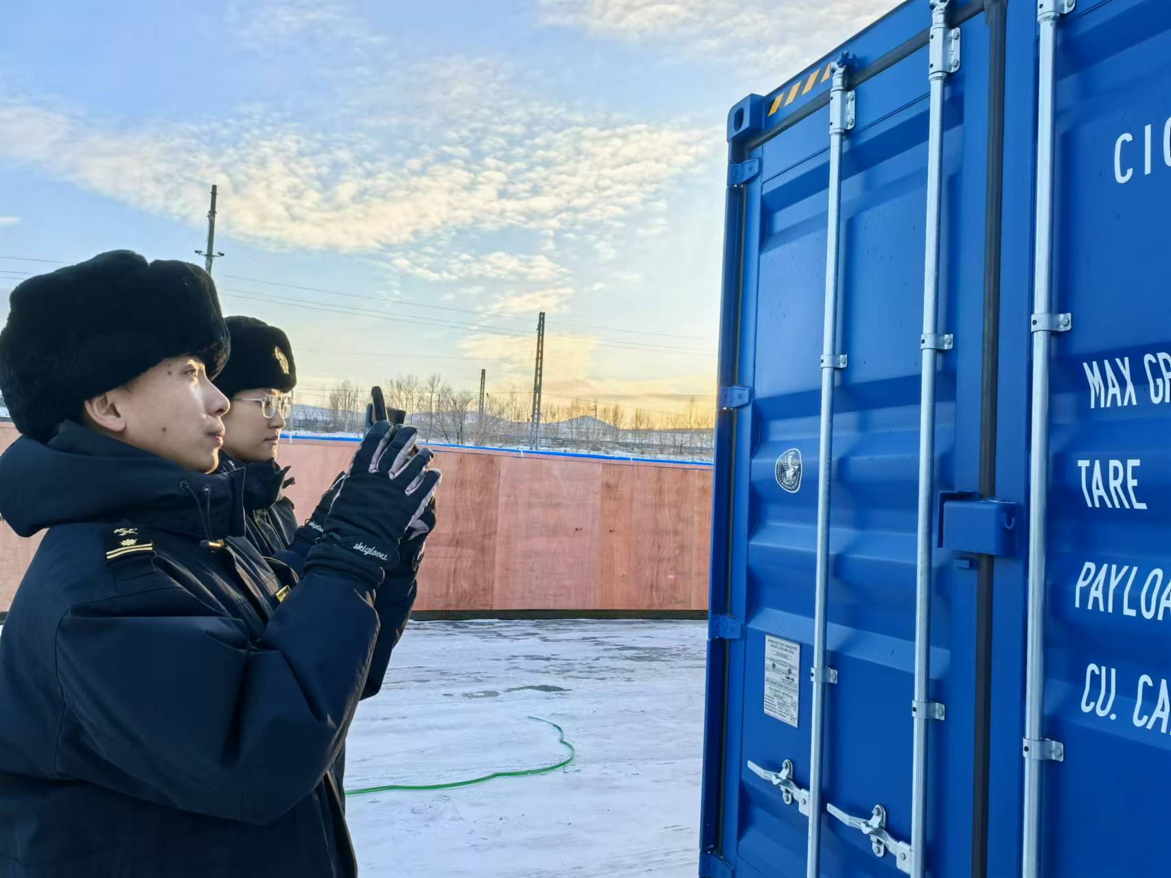 图为满洲里车站海关关员对进口货物开展监管作业。 通讯员 王源 摄