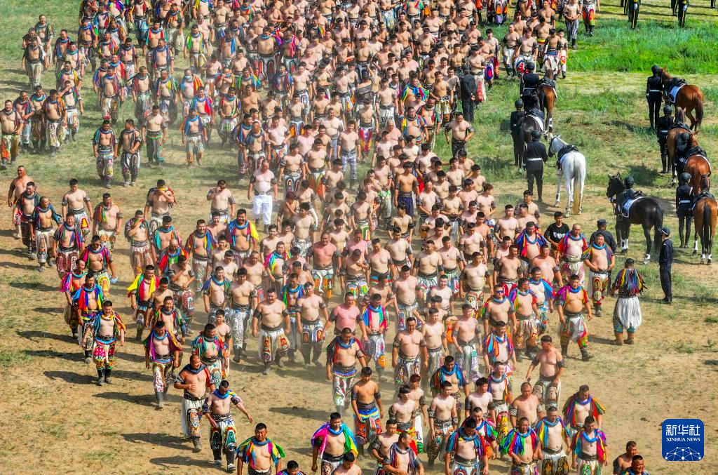 7月14日在开幕式上拍摄的搏克手(无人机照片)。