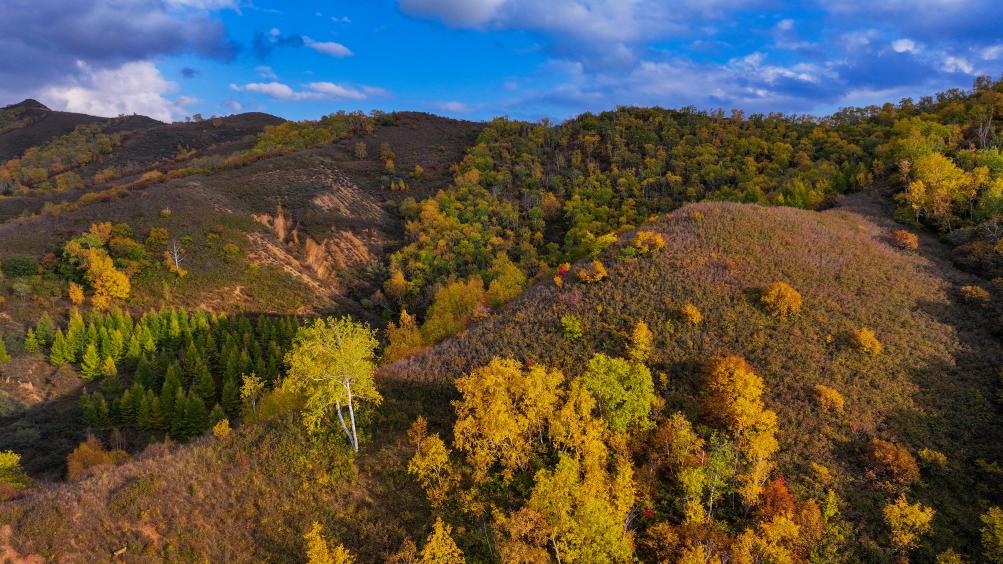 金秋时节,位于内蒙古乌兰察布市卓资县大榆树乡的林胡古塞旅游区秋景如画。
