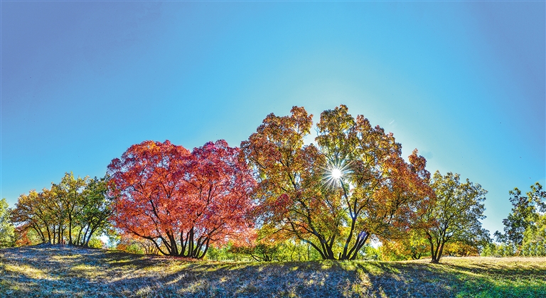 通辽市科左后旗乌旦塔拉五彩斑斓的枫树林。
