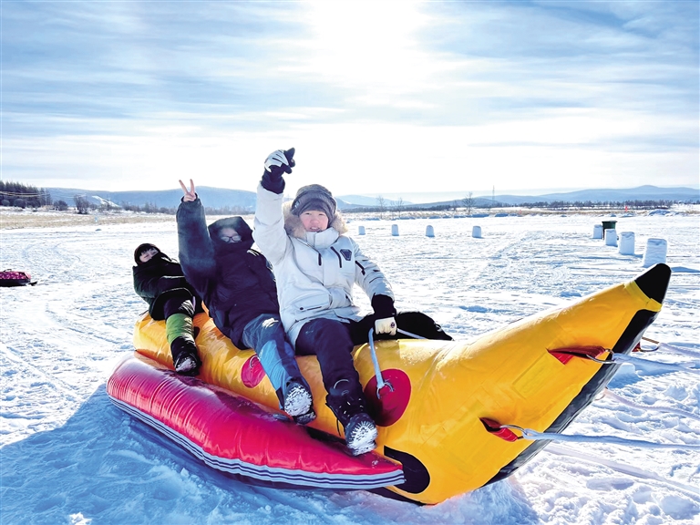 “我们还有精心打造的冰雪乐园,在全天不同时间段设置了雪地龙舟赛、雪地拔河赛、人拉爬犁赛、滑冰车赛等五大赛事,冰雪项目娱乐区设置了超级雪地大麻将、雪地香蕉船、雪地八爪鱼等十余种雪地娱乐项目,所有项目全天开放,让每一位游客都能找到属于自己的冬日乐趣。”任虹说。