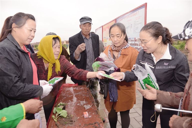 集宁区马莲渠乡霸王河村党支部书记、村委会主任金雪瑞(中)在田间地头传授种植经验。