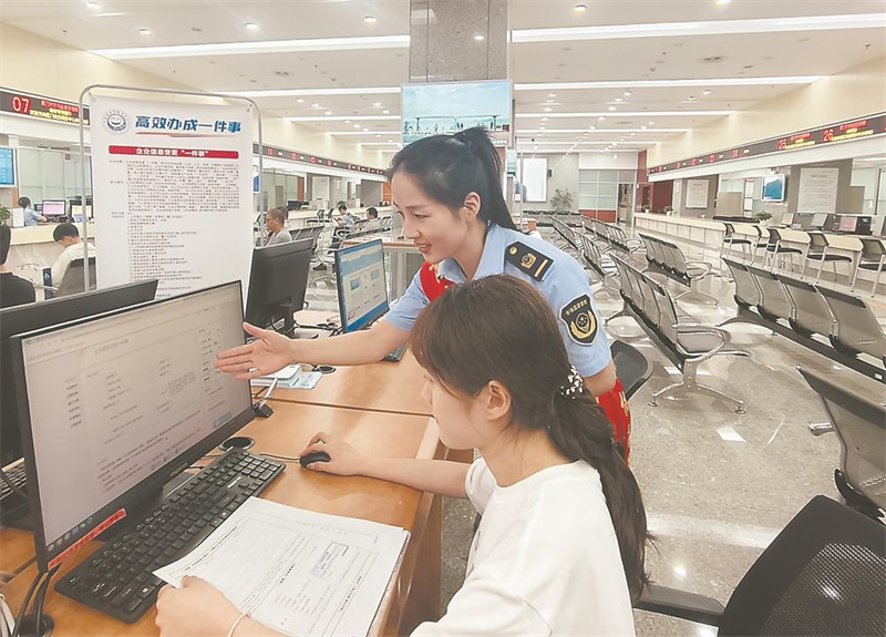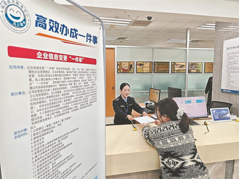 市场监管局工作人员提供“高效办成一件事”帮代办服务。(厦门市市场监管局供图)