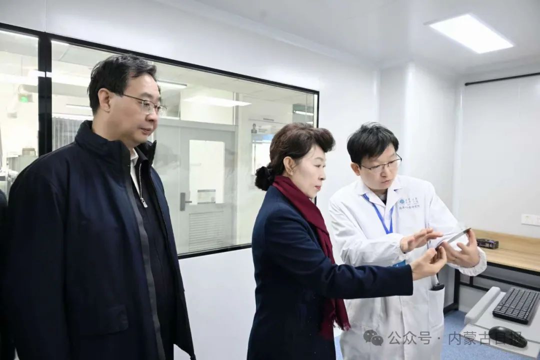 2月18日,王莉霞来到内蒙古大学稀土材料研究校企联合实验室,同科研工作者深入交流,详细了解学科发展、专家团队建设、科研成果转化应用等情况。草原云·内蒙古新闻网记者 韩卿立 摄