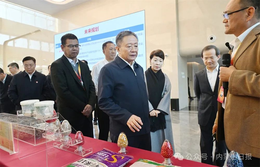 11月14日,自治区党政代表团走进大北农凤凰国际创新园,认真听取企业发展规划介绍,参观了生物工程育种重点实验室和部分成果及产品。草原云·内蒙古新闻网记者 马建兵 摄