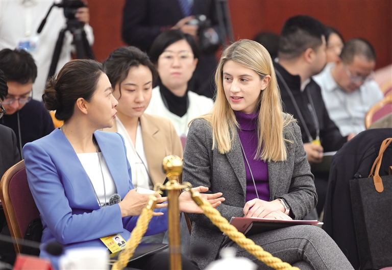3月6日下午,十四届全国人大三次会议内蒙古代表团在驻地举行全体会议,并向参加全国两会报道的中外媒体开放。本报记者马建兵 摄