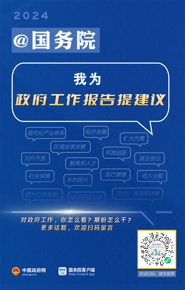 “@国务院 我为政府工作报告提建议”网民建言征集活动开始!