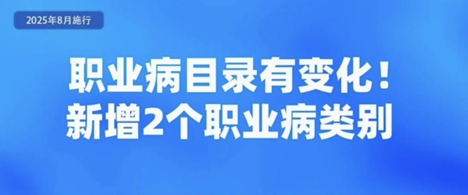 国家卫生健康委、人力资源社会保障部、国家疾控局、全国总工会等四部门此前联合发布调整后的《职业病分类和目录》,由原10大类132种职业病调整为12大类135种职业病(包括4项开放性条款)。调整后的目录将于2025年8月1日起实施。目录新增2个职业病类别,分别为职业性肌肉骨骼疾病、职业性精神和行为障碍,每个类别中分别新增1种职业病。其中,职业性肌肉骨骼疾病类别中新增腕管综合征(限于长时间腕部重复作业或用力作业的制造业工人),职业性精神和行为障碍类别中新增创伤后应激障碍(限于参与突发事件处置的人民警察、医疗卫生人员、消防救援等应急救援人员)。